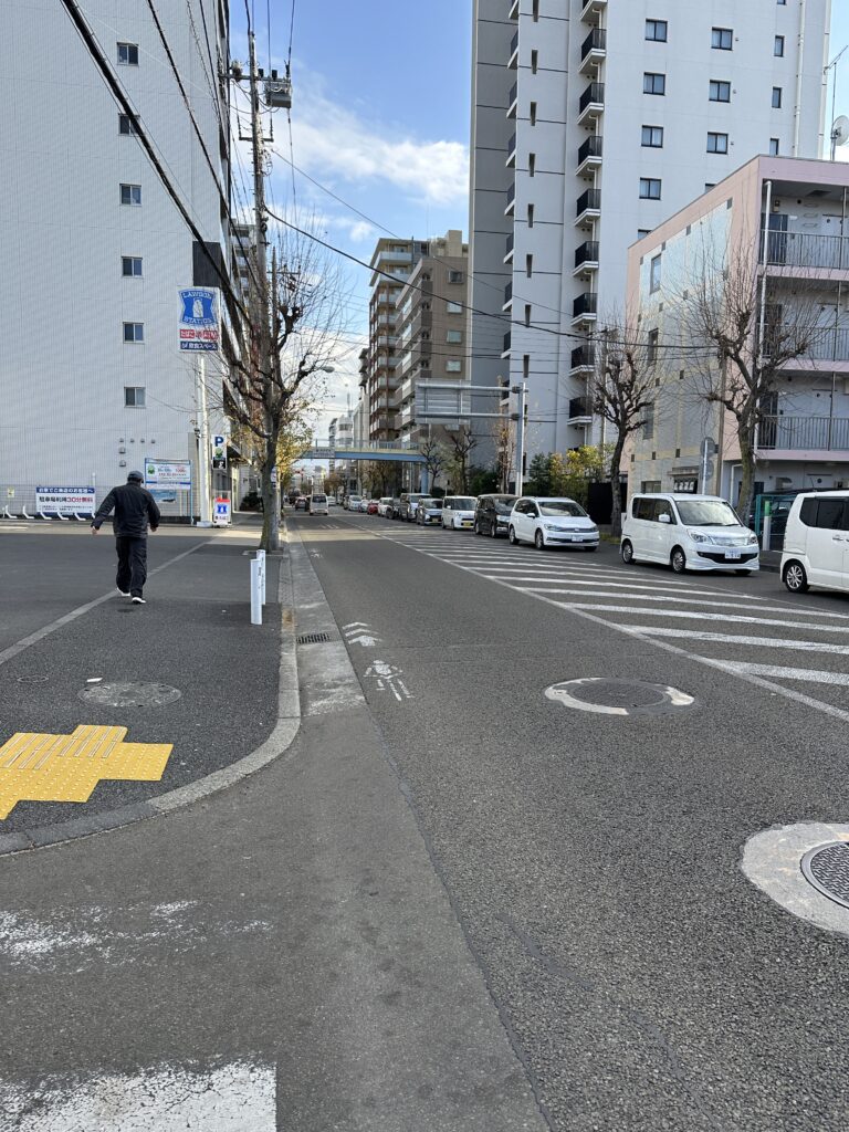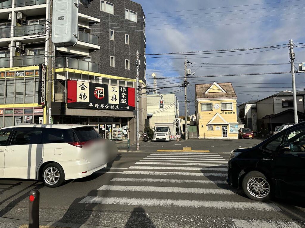 7.町田街道につきあたったら、横断歩道を渡り左折します。