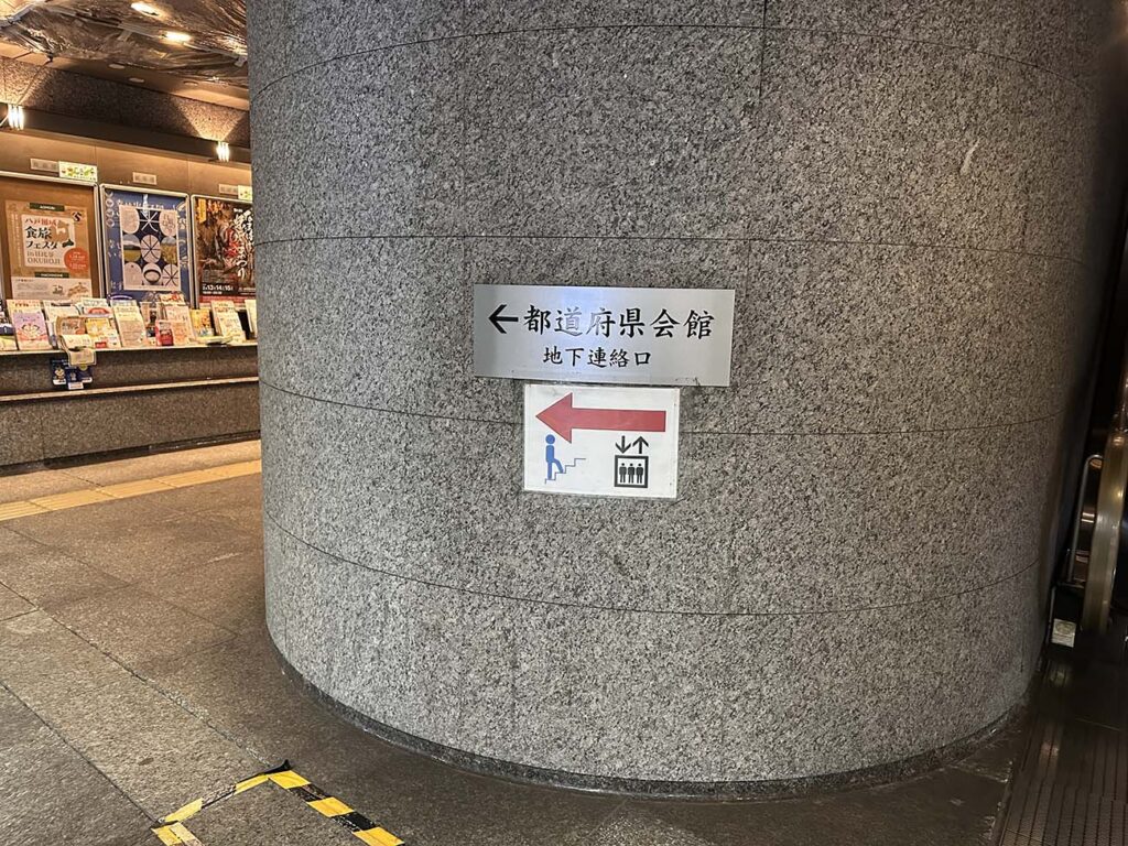 2.地上に出ず、左側の通路、都道府県会館の地下連絡口に行きます。